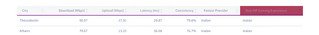 Ενδεικτικά, στην Αθήνα η INALAN παρουσίασε διάμεση ταχύτητα download 79,67 Mbps με latency 16,08 ms, επιβεβαιώνοντας την υπεροχή της INALAN έναντι όλων των άλλων παρόχων στις συγκεκριμένες περιοχές μέτρησης. Η πρωτιά της INALAN καταγράφηκε στις περιοχές όπου διαθέτει γεωγραφική κάλυψη, επιβεβαιώνοντας την απόδοση του FTTH δικτύου της εκεί όπου λειτουργεί.
