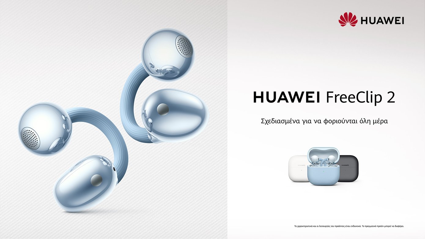 Υπάρχουν μέρες που ξεκινούν με ένα podcast στον δρόμο για τη δουλειά, συνεχίζονται με διαδοχικά calls, «τρέχουν» με ειδοποιήσεις και καταλήγουν σε μια βραδινή βόλτα όπου θες απλώς να ακούς μουσική, χωρίς να χάνεις επαφή με τους γύρω σου. Σε αυτό το 24ωρο, τα HUAWEI FreeClip 2 μπαίνουν σαν ένα αξεσουάρ που δεν σου ζητά να διαλέξεις ανάμεσα σε ήχο και πραγματική ζωή. Είναι open-ear, δεν κλείνουν το αυτί, δεν σε απομονώνουν και κυρίως είναι σχεδιασμένα για να τα φοράς από το πρωί μέχρι το βράδυ χωρίς να σε κουράζουν.